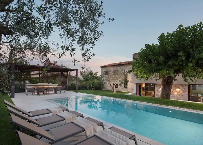Die Villa Melon Kirmenjak verfügt über eine Terrasse mit Blick auf den Pool und ist 46 Autominuten vom Flughafen Pula entfernt gelegen. Die Villa bietet einen Swimmingpool sowie einen Jacuzzi und eine Sauna, damit Sie sich nach einem anstrengenden Tag entspannen können.